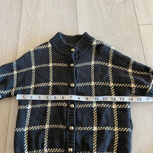 Janie and Jack Baby Girls Windowpane Belted Sweater Gray size 5