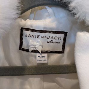 Cream colored Janie and Jack toggle pea coat with faux fur-lined hood. Size is 6-12 months. This jacket is SO cute and in excellent condition. My daughter wore it once when I was in a wedding/she was a guest at the wedding during the winter. There are absolutely no stains or flaws - she never ate while wearing it or anything. I wish it still fit her! Note - I selected 6-9mo as the size, because 6-12mo is not available to select.