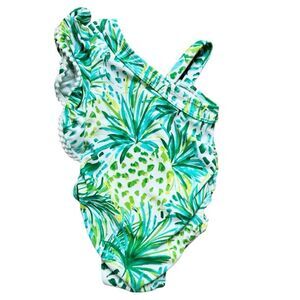 NWOT / NEW WITHOUT TAGS Janie and Jack Baby Girl Pineapple Print Ruffle One Piece Bathing Suit. Swimsuit. Swimwear. Summer. Pool. Beach.