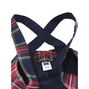 Features front and back pockets, plus adjustable suspenders for the perfect fit. Navy plaid.