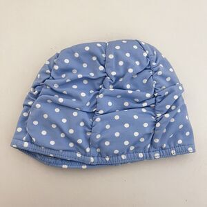 Janie and Jack Blue with White Polka Dots Bow Swim Cap Baby Girls Size 6-12 Months. Adorable little swim cap for baby girl. Blue with white polka dots and a bow on the front. Has been worn, but no issues that I can find. So cute! Good Used Condition.