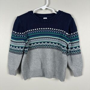 Janie and Jack Boys 2T Crewneck Fair Isle Knit Sweater Blue Green Holidays
