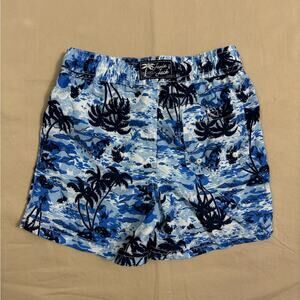 Janie and Jack Boys Blue Black Swim Trunks Ocean and Palm Tree Graphic Size 5