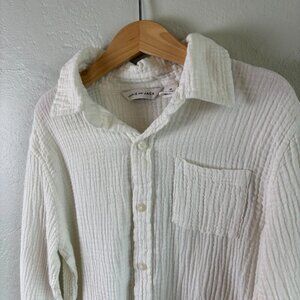 Janie and Jack Boys Gauze Button-Down Shirt White Cotton Long Sleeve Size 10