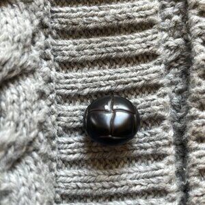 The coziest layer for cooler days, this cable knit cardigan has patch pockets and a ribbed shawl collar, plus faux leather button details. Pairs well with hot cocoa and fireside stories.