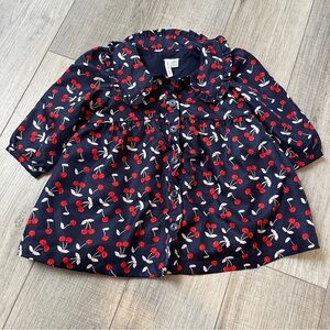 Janie and Jack Cherry Collared Dress - Size 6-12M Merchant Marine Cherry Trendy