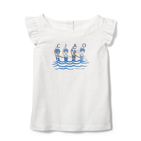 • Janie and Jack • Ciao Swim Girls Ruffle Tank Top White Blue 6-12 Months