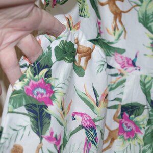 A one-and-done look we love for sunny days. With tropical florals, monkeys and parrots, plus ruffle sleeves and a cutout back detail finished with a bow.