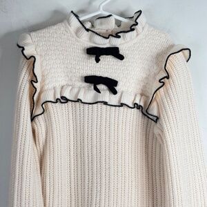 Janie and Jack Cream Ruffle Sweater 8 Bow Chunky Holiday Photos Christmas Preppy