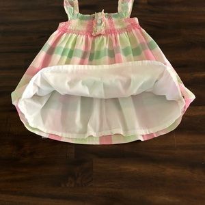 Super Cute Janie and Jack dress with beautiful pink,green and white colors have small stains I’m show in the last picture. Preow but in Excellent condition. Size 18-24 Months.