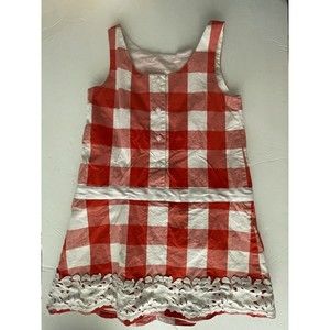 Janie and Jack Dress Girls 5 Midsummer Picnic Gingham Red White Lace Sleeveless