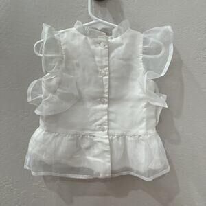 Janie and Jack shirt size 2T. Chiffon-like white top with embroidered floral on bodice with ruffle sleeves. Super cute! Excellent condition - please note the trapped thread in shirt - hardly noticeable.