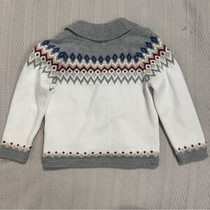 Beautiful Fair Isle sweater from Janie and Jack in size 18-24 mo. White with gray/blue/red/taupe Fair Isle pattern, button front. Cotton/rayon/nylon blend, soft and cozy!