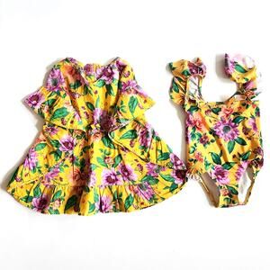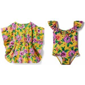 Janie and Jack Floral Ruffle Swim Cover-Up & Flutter Sleeve Swimsuit Size 2T