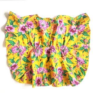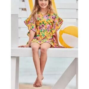 For poolside lounging, beach days or just because, we love this bright floral cover up. Made in pure cotton with ruffles, an elasticized waist and a little bow too.