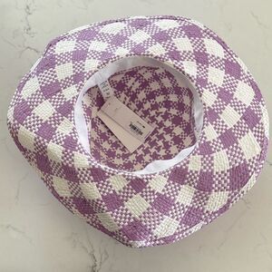 Janie and Jack Gingham Straw Sun Hat in Orchid Breeze Gingham Size 6-8 Girls