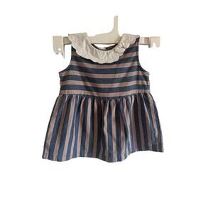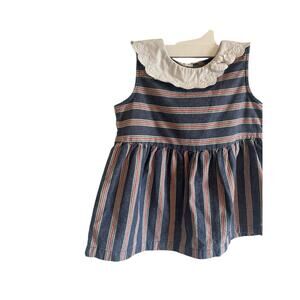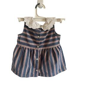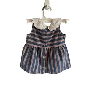 Janie and Jack Girls 3T Blue Red Stripe Cotton Chambray Lace Collar Shirt