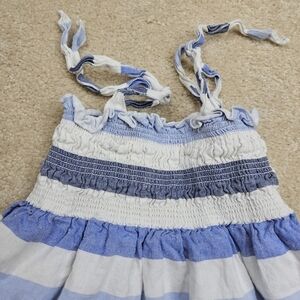 Janie and Jack Girls 6-12 Linen Blend Dress Blue + White stripes #pinktag