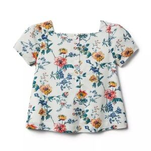 Keywords: Janie and Jack, girls blouse, ivory, floral, cotton, sweetheart neckline, flutter sleeves, casual, pre-owned, machine washable.