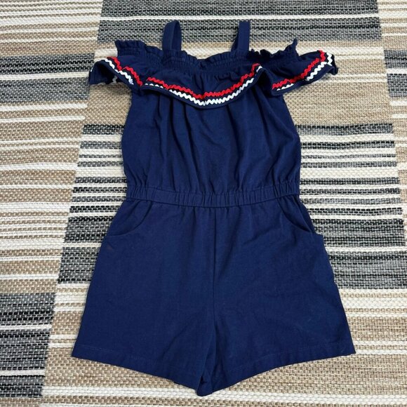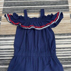 Janie and Jack Girls Ric Rac Cold Shoulder Romper 100% Cotton Patriotic Blue 7