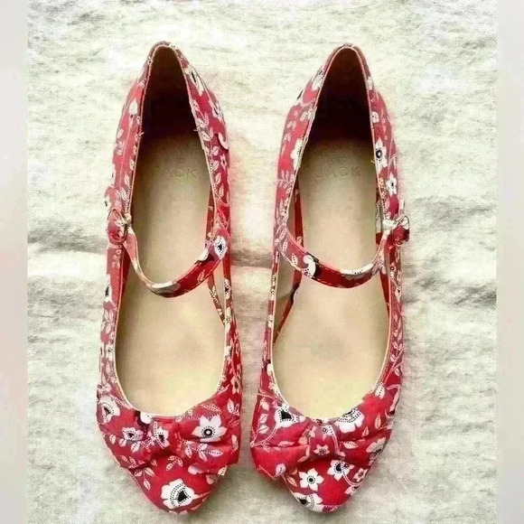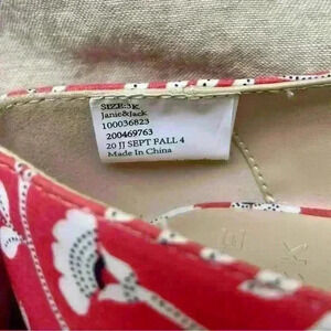 Janie and Jack Girl’s Size 3K Red/White/Black floral fabric Mary Jane shoes with bows. Barely worn, excellent condition.
