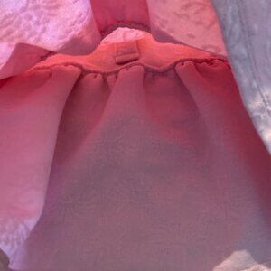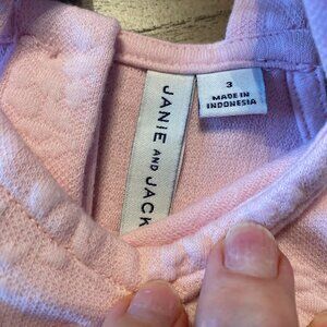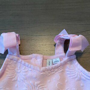 The Janie and Jack Pink Sundress is cute. It is made with a blend of polyester and cotton. It has two straps with attached bows.