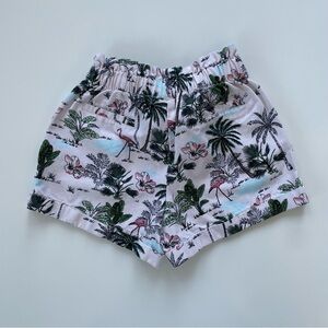 All the details we love for this tropical flamingo print short, like a paperbag waist, bow detail and rolled cuffs. Plus, front pockets for the little things.