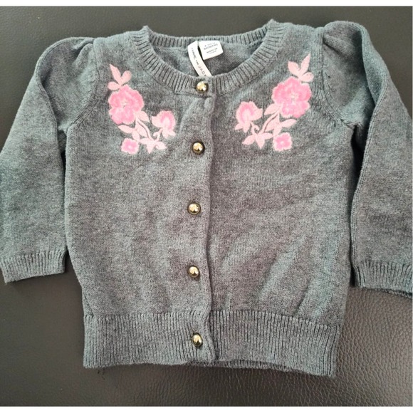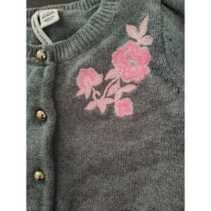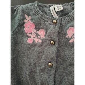 Janie and Jack Gray Pink Embroidered Cardigan Floral Feminine 6-12 months