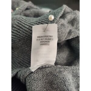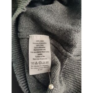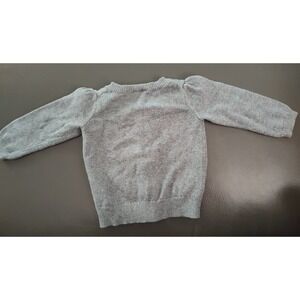Adorable puff sleeve cardigan with metallic round buttons with sweet floral embroidery on the chest. Dark heathered gray cotton, soft and warm.
