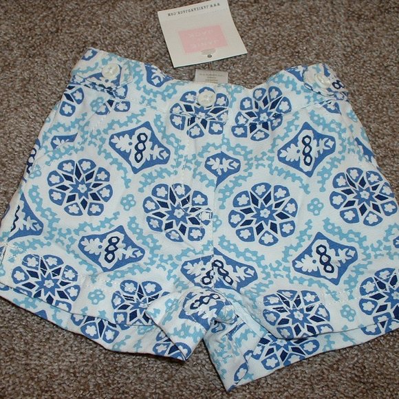 Cute mosaic shorts made by the boutique brand Janie and Jack. They are BRAND NEW WITH TAGS!! They are a size 3-6 months. So Sweet! I am pretty sure they were from the greek isles collection, but I am not certain, tag is dated 2009.