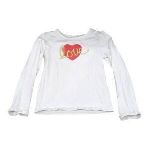 Janie and Jack Heart Valentines red White gold long sleeve shirt girls size 5