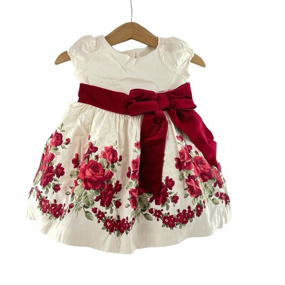 Janie and Jack Holiday Party Dress 3-6 Mon. Roses White Duppioni Silk