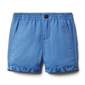Janie and Jack Ikat Hem Pull On Linen Shorts size 5 Rivera Blue Preppy Summer