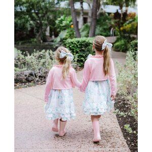 Delightful Janie and Jack infant girls’ bloomers in size 6-12 months. Perfect for Easter or spring family photos. Ideal for twins or cousins. Worn twice, requires ironing.