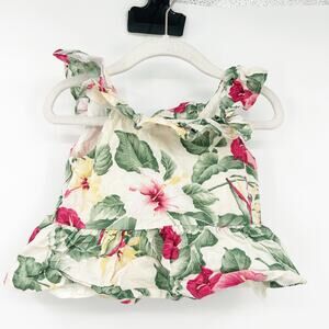 Janie and Jack Kids Girls Boho Summer Resort Tropical Floral Peplum Top in Cream Green Pink. Size 2T.