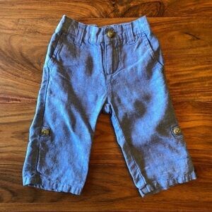 Janie and Jack light blue linen bottoms. Button tab converts them from pants to shorts.