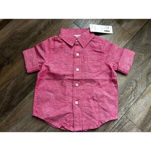 Janie and Jack Linen Blend Roll Cuff Shirt Red Preppy 6-12 Months New With Tags