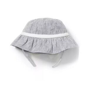 Janie and Jack Linen Stripe Bucket Hat in Soft Gray Stripe Size 6-12 Months