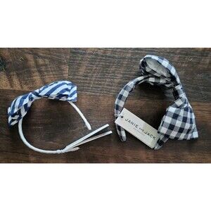 The Janie and Jack Lot Of 2 Side Bow headbands are perfect for adding a stylish touch to your little one's outfit. Made of 100% polyester, these headbands feature a navy blue and white check and stripe pattern, making them a versatile accessory for any party occasion. With a one size fits all design and adorable bow accents, these headbands are a must-have for any young fashionista.