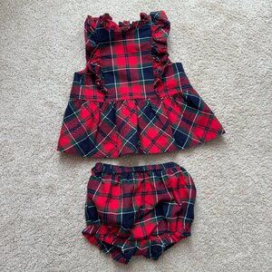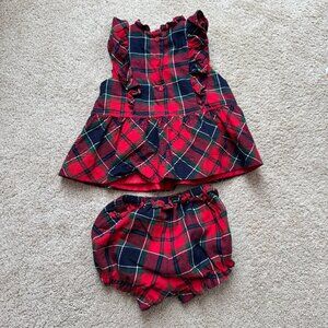 Whether it's her first Christmas or a family moment to remember, our peplum plaid set with ruffle details is an easy match.