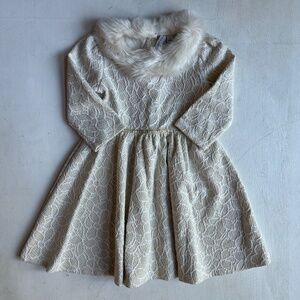 She'll be the star of the show in this jacquard dress, complete with a soft faux fur collar and gold metallic detailing.