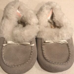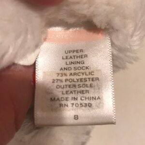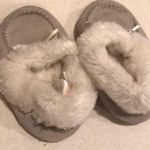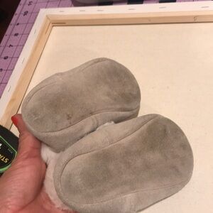 Adorable moccasins size 8 toddler size. Says toddler 8 but my son wore when he was 2 years old. Color is light gray.