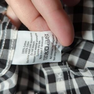 Chic plaid button down. Classic monochrome design. Ideal for versatile styling.