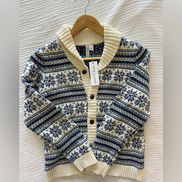 Elegant knit kids sweater by Janie and Jack. Features an ivory and navy design. Brand new with tags! So cute for the winter or as a holiday gift! Originally sold for $80! #janieandjack #kidswear #kidssweater #kidswag #christmasgift #gift #quietluxury