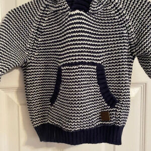 Janie and Jack Navy Blue Stripe Knit Pullover Sweater with Hood