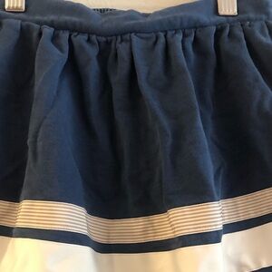 Sweet Janie and Jack skirt. Navy blue with a cream ribbon and a cream/tan striped ribbon.