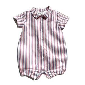Janie and Jack Patriotic Striped Button Up Cotton Romper 3-6 Months