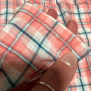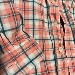 Janie and Jack Peach and Blue Plaid Button Down Shirt