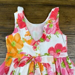 Janie and Jack size 5 girls gorgeous spring summer dress with bright pink floral print- excellent like new condition. No dryer use. First owner, my daughter wore it once. Back button and bow closure. Lined and has the prettiest ruffle detail.
