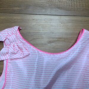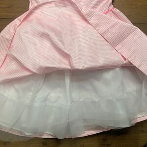 Janie and Jack party dress. Pink and white. Bow on shoulder. Button back. Lined with full underskirt. Like new condition.